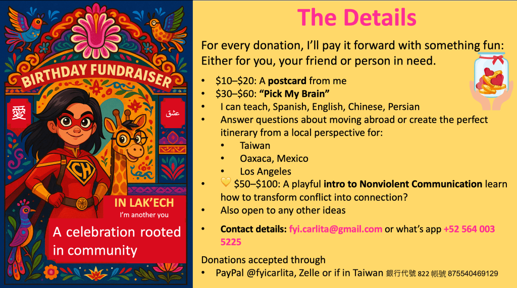 Since receiving is still a growing edge for me, I’m turning it into a joyful, playful act of receiving and giving. A reminder that healing is communal, not solitary. As the Mayan saying goes: In Lak’ech — I am another you, and you are another me.